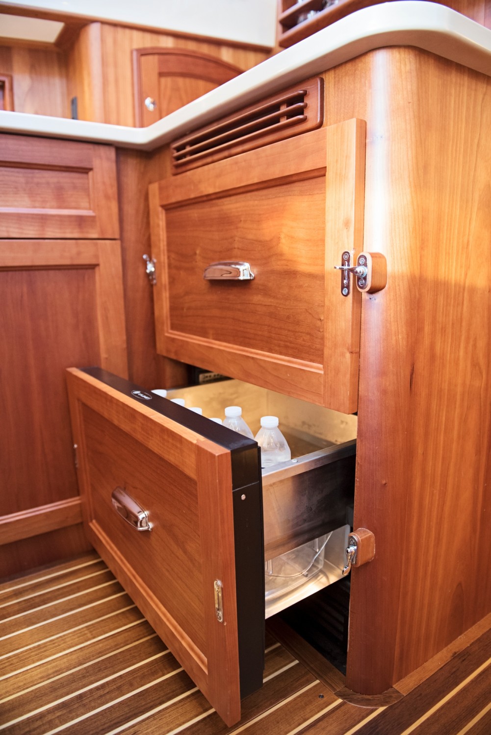 - Interior Finish for galley, guest cabin, heads, forward cabin Satin varnished cherry (includes cabin sole)